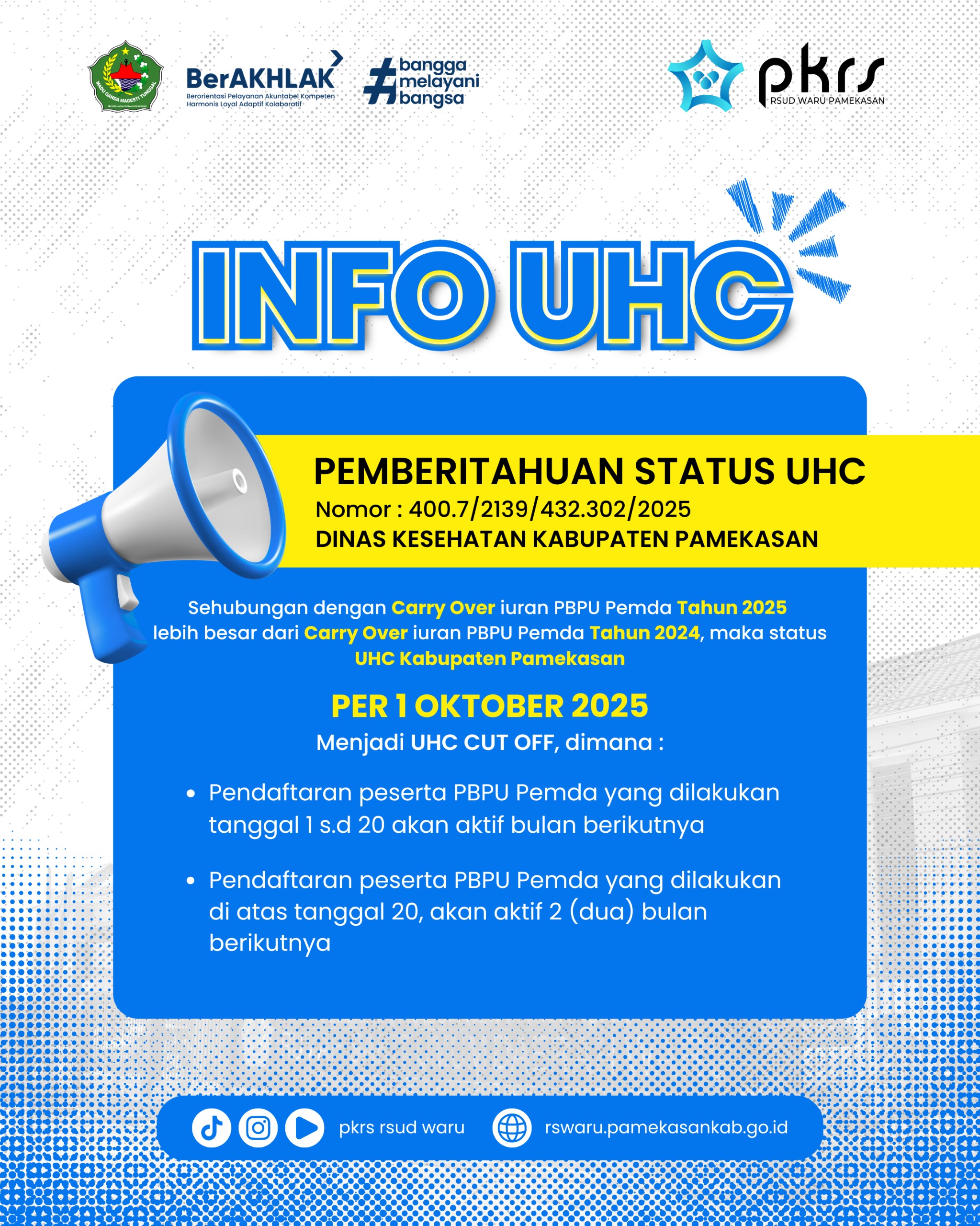 Berdasarkan Surat Dinas Kesehatan Kabupaten Pamekasan Nomor : 400.7/2139/432.302/2025 tentang Pemberitahuan Status UHC.